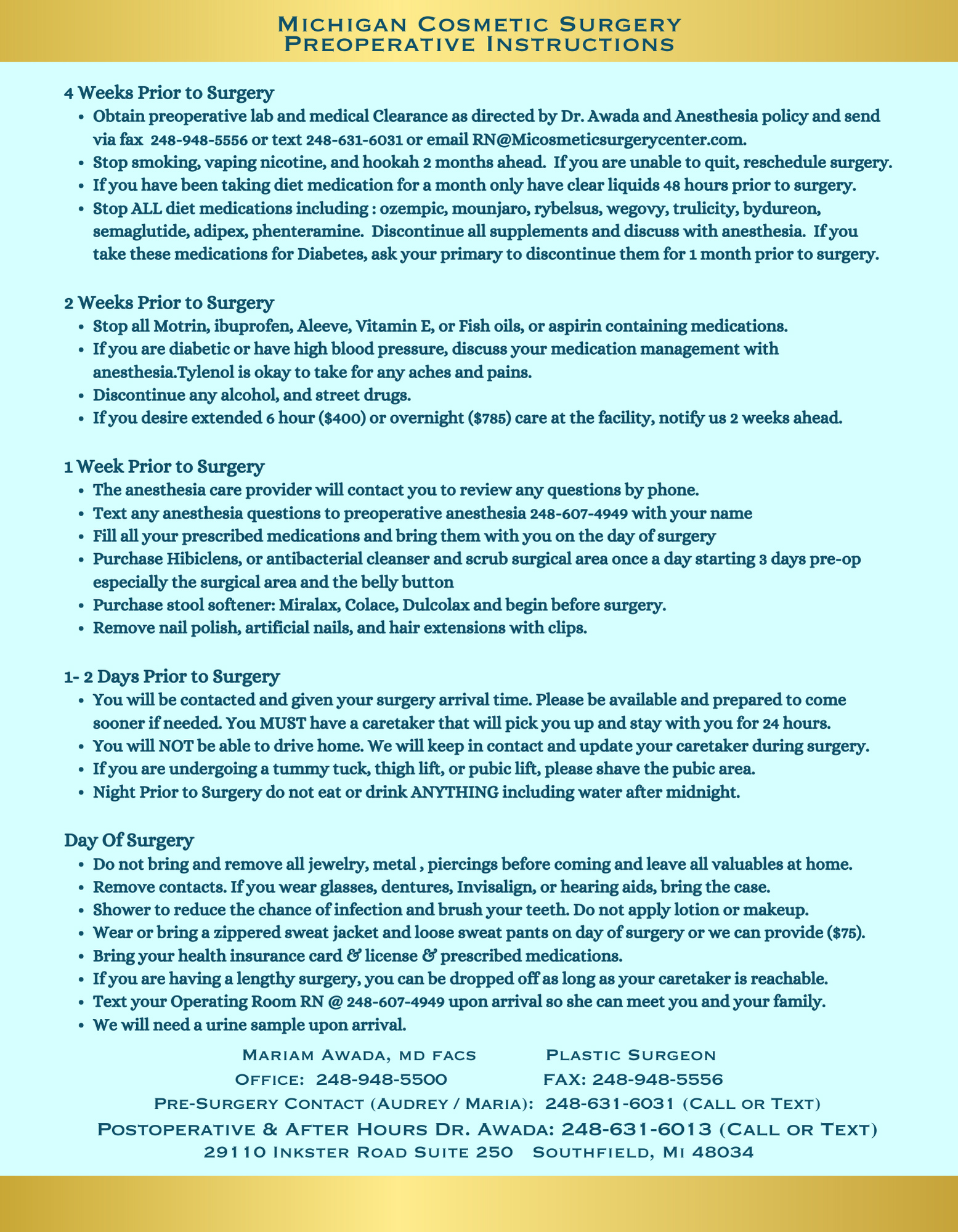 - Send your results via fax (248) 948-5556, or email to maria@michigancosmeticsurgery.com.